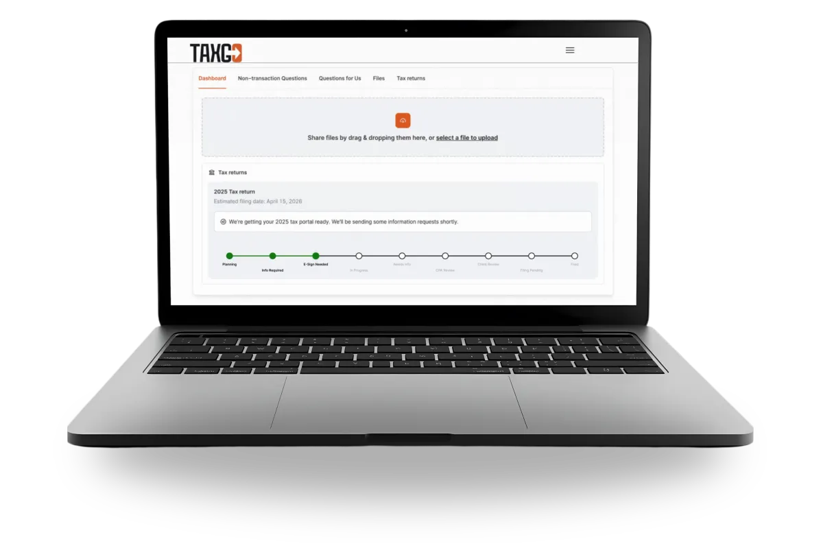 TaxGo is built for people who want their taxes handled properly — without giving up evenings, weekends, or peace of mind. Our streamlined, virtual process combines simplicity with professional, CPA-reviewed oversight, so your return is accurate, compliant, and done right the first time.